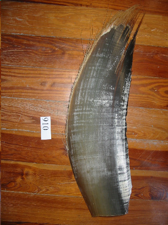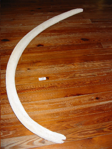 Parte superior da boca do peixe espada, "Xiphias gladius", de forma alargada e rematada en punta (espada). Cor branca xa que perdeu a cuberta orgánica que a protexía e lle daba unha cor grisácea.