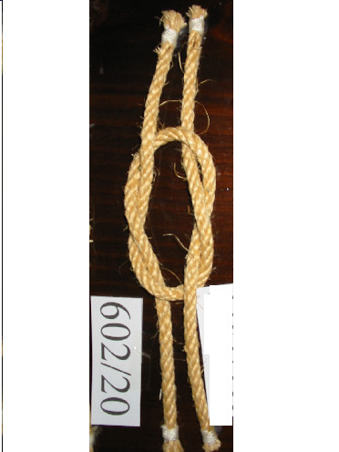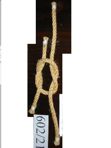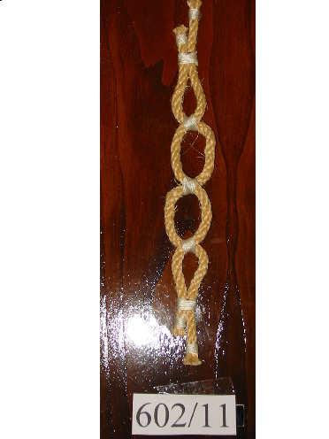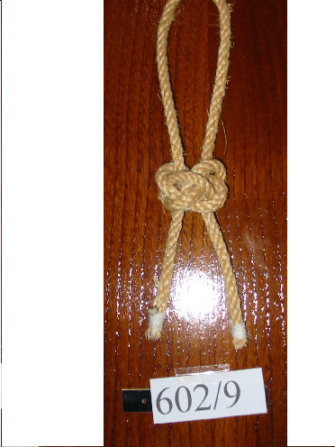 Nó margarita feito cunha soa corda de dous cabos, non empata unha corda con outra. Ten un pedaciño de pau en cada oco dos extremos para facer o nó máis seguro.
