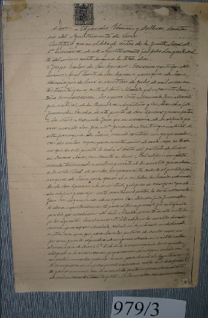Folio A3 doblado á metade, algo marelento, redactado por unha soa cara. Na parte superior, no centro ten un selo, con nº 15, un esculo e pódese ler: "ESPECIAL MOVIL". A continuación segue o texto ata rematar o folio.