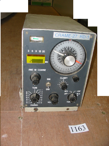 - Caixa de metal gris con catro pechaduras. Na cara frontal ten os mandos de radio. Modelo CRAME-27 RD-1. Ten escrito: Receptor direccional.