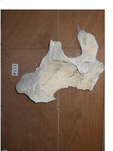 - É unha parte pequena dun craneo de cor branco. Pertence á parte superior pero non está completa. Posiblemente pertencera a un golfiño