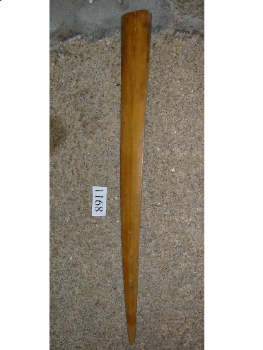 - Peza de óso alongada que se estreita progresivamente. É de cor marrón máis claro por unha cara que pola outra.