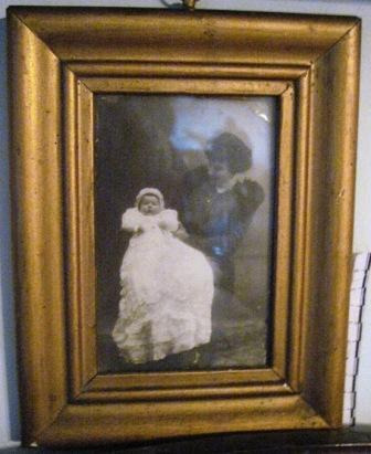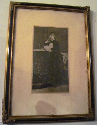 Fotografía en branco e nego de Mª Purificación de Andrés e Cuenca. Marco en madeira con aplicacións en bronce nas esquinas. Do estudio fotográfico de Ernesto Schreck Schültz, estabelecido en Ourense en 1922.