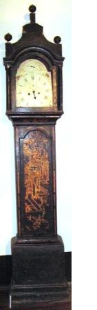Reloxo con calendario de caixa alta da casa inglesa de William Dorrel (1784-1810), decorado no frontal cunha chinoiserie de repertorio, o ascenso a un dos cumios sagrados da China, de reflexos dourados e de gran calidade técnica. Consideramos que a caixa é anterior á maquinaria do reloxo, pois responde ao tipo xorxiano, moi semellante aos producidos por un Joseph Davis en Londres, cara os anos 40 do século XVIII. A decoración, en tons ocres sobre fondo negro, a base de superposición de lacas, executada de maneira lenta e delicada para alcanzaren o relevo adecuado, nunha superficia lisa e bruñida. Esfera cadrada con copete semicircular. Hai exemplares deste tipo no Palacio Barones de Valdeolivos (inv. V0166) e no Museo de los Relojes de Jerez.