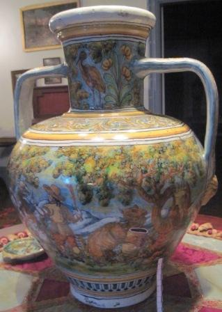 - Xarrón en cerámica de Ruiz de Luna (1863-1945), Talavera. Corpo decorado con motivos vexetais e animais, osos e panal de mel. Dúas asas.