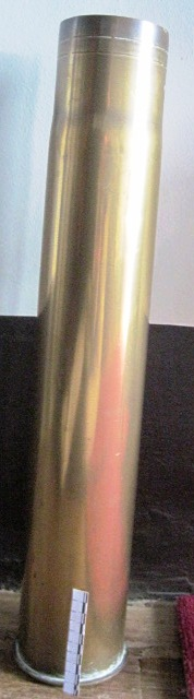 - Vaíña de proxectil de artillería en forma cilíndrica de latón, da Guerra Civil.
