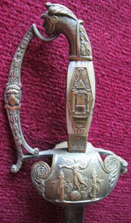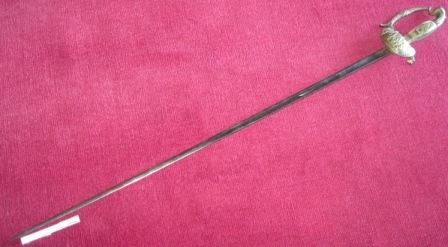 - Espadín de cinxir con empuñadura que consta de gardamán e gabiáns rectos con galluelo e concha volta, botón con forma de flor e gardamán con motivos vexetais e animais, cabeza de león. O filo presenta tres mesas.
