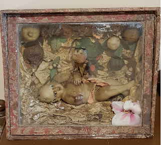 - Furna en madeira policromada en tons granates e parte frontal de cristal soprado. No seu interior contén unha imaxe do Neno Xesús, feito en cera, adornado con froitos e flores en cera e papel. Dispón dun mecanismo que fai que abra e peche os ollos.
