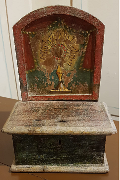 - Peto en madeira de castiñeiro policromada, adicado ó Santísimo Sacramento. Na peita representa a imaxe dun ostensorio. Agarradeira no reverso.