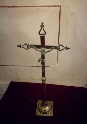 - Crucifixo en bronce cun astil columnario de orde toscana sobre plinto en forma de campá e basamento cadrado. O Cristo é de tres cravos co perizonium anudado á esquerda. Os brazos da cruz, flordelisados e calados.