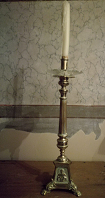 - Facheiro en bronce con pé triangular rematado en gadoupas coas imaxes do Sagrado Corazón de Xesús, de María e de Xesús Mozo portando a cruz. Vástago acanalado con estrangulamento na macolla.