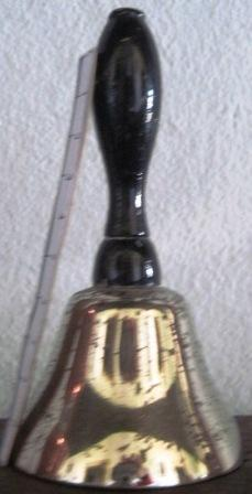- Campaíña feita en bronce e con mango en madeira de cor negro (ébano).