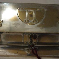 - Caixa xoieiro en metal bañado en prata repuxada con motivos xeométricos.