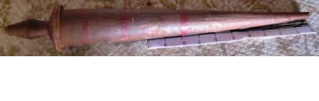- Fuso en madeira, na parte máis grosa tres raias en cor vermello.