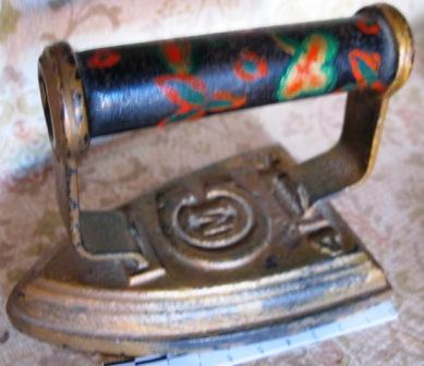- Ferro de pasar fundido en ferro, de cociña ou quecer, con puño de cor negra decorado con motivos florais do número "4". Nela aparece gravada a letra M enmarcada nunha C (ou sexa, 4 Centímetros)