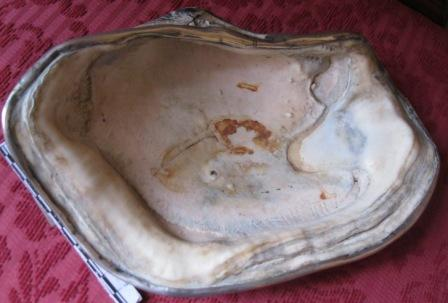 - Cuncha dunha ameixa xigante ribeteada en prata.