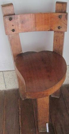 - Cadeira feita en madeira de castiñeiro con asento en forma de corazón e apoiada en tres pés.