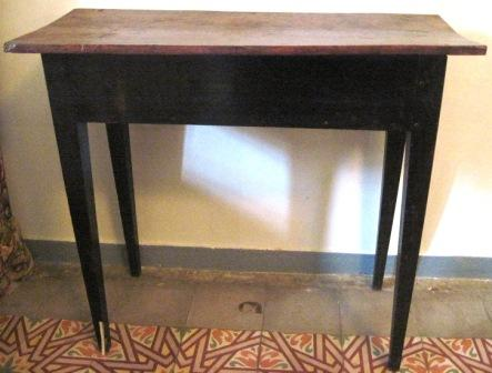 - Mesa en madeira de castiñeiro con catro patas afusadas e pintada a parte de abaixo de negro.