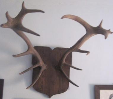 - Panoplia en madeira de castiñeiro en forma de escudo que serve de soporte a dous cornos de cervo: un de oito puntas e outro de nove puntas.