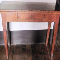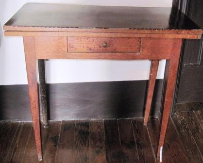 - Mesa de xogos en madeira de caoba con tapa abatible. Aberta, torna en taboleiro de xogo de cartas en madeira de caoba con embutidos de marquetería que debuxan o leitmotiv da rosas dos ventos. Caixón frontal. Apoiada en catro patas afusadas, unha delas abatible (que se abre para suxeitar o taboleiro cando a tapa está aberta)