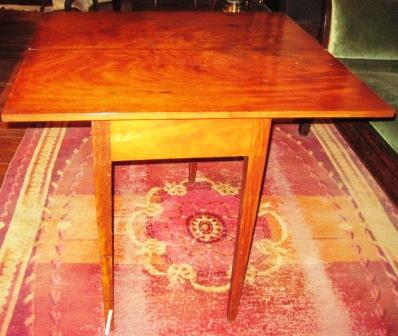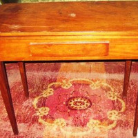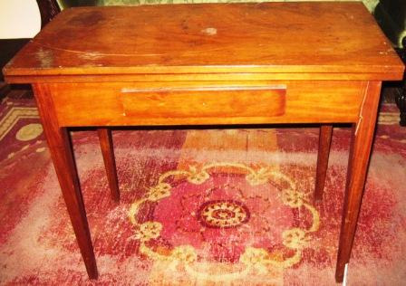 - Mesa de xogos con taboleiro abatible e un caixón. Vai sobre catro patas afusadas.