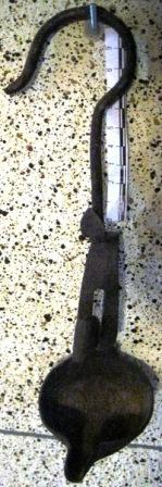- Candil de aceite dun só bico con gancho para colgar, feita en ferro fundido.