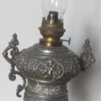 - Quinqué de petróleo en calamina, fundido a molde con forma de xarrón, con relevo de sereas de dobre cola e grutescos na macolla; dúas asas e catro pés en forma de garra. O tubo en vidro. A chave deste quinqué indica que o queimador é da famosa marca alemá Kosmos Brenner, que empezou a denominarse así cando, a finais do século XIX, Brökelmann, Jaeger & Co, de Neheim (Alemaña), comprou a marca "Kosmos" a Wild & Wessel, de Berlín. Kosmos foi o nome co que os lampistas alemáns Wild e Wessel sacaron ao mercado un novo queimador ou chisqueiro da su invención para lámpadas de petróleo. A toma de aire era de combustión lateral pero o sistema permitía levar o aire até o centro da lapa.
