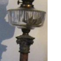 - Quinqué de pé cadrangular de dos escanos decrecentes e astil en forma de columna de orde composta de marmolina veteada co seu capitel en aliaxe de chumbo fundido en molde; o depósito en cristal tallado co seu chisqueiro en bronce e latón da marca Kosmos Brenner. A tulipa en cristal, lotiforme. A marca alemá Kosmos Brenner empezou a denominarse así cando, a finais do século XIX, Brökelmann, Jaeger & Co, de Neheim (Alemaña), comprou a marca "Kosmos" a Wild & Wessel, de Berlín. Kosmos foi o nome co que os lampistas alemáns Wild e Wessel sacaron ao mercado un novo queimador ou chisqueiro da su invención para lámpadas de petróleo. A toma de aire era de combustión lateral pero o sistema permitía levar o aire até o centro da lapa.