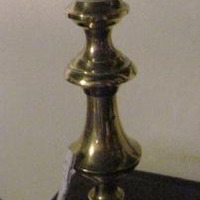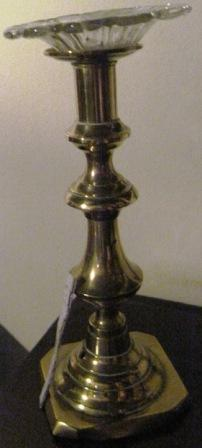 - Candeeiro en bronce de pé cadrado e astil abalaustrado con estrangulacións. Basamento troncocónico con aristas concéntricas incisas. Dunha soa luz, presenta no remate repisa exvasada que serve de base a un pratiño en cristal tallado e voado para recoller a cera.