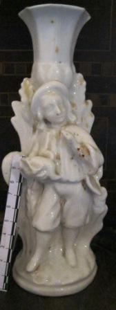 - Candeeiro en porcelana de cor branco, no corpo unha figura en relevo dun neno vestido de pastor.