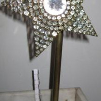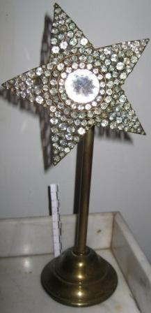 - Pé dunha lámpada de sobremesa en bronce con patalla en forma de estrela de cinco puntas e cristais tallados e engarzados.