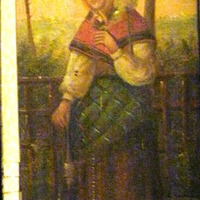 - Cadro costumista ó óleo pintado sobre táboa de castiñeiro que representa a unha muller fiando con traxe típico galego, asinado por Cándido Garabal. Sen marco.