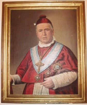 Garabal P.r C 1877|Antecede aos retratos asinados por Cao Cordido, Fenollera e tamén ao que lle fixo o pintor Román Navarro (1885), nunha disposición semellante, derivada da retratística papal e cardealicia do Renacemento. O retrato semella cortado, pois o bufete no que parece recibir, é só unha alusión a través do xesto da destra, da que só se representa o comezo. Isto pode indicar unha posíbel débeda coa fonte fotográfica da que houbo de partir o pintor para compoñelo. Pensamos no retrato fotográfico de Leopoldo Rovira, feito o mesmo ano de 1877. A cruz peitoral que loce nestes e seguintes retratos xa como arcebispo de Toledo, sería doada ao santuario da patroa do seu pobo natal, a Virxe da Divina Aurora, en Beneixama. Fora un regalo da raíña Isabel II. De prata branca e sobredourada, con pedras semipreciosas. O retrato expresa o seu recente nomeamento como cardeal de Roma polo papa Pío XI. Chegou a ser primado de España baixo o pontificado de León XIII, do que se conserva un gravado no cuarto de Uxío Novoneyra. Canto ao pintor: Formouse con Juan José Cancela del Río. Os pais enviárono a Madrid, onde tivo por mestre a Federico Madrazo na Real Academia de Belas Artes de San Fernando. De volta a Santiago opositou á praza de Debuxo da Real Sociedade Económica de Amigos do País, sen éxito, pois gañoulla Modesto Brocos. Practicou unha pintura romántica e costumista en retratos, paisaxes e pintura relixiosa. Con motivo de senllas visitas reais a Compostela, en 1858 regaloulle unha acuarela do Pórtico da Gloria a Isabel II e en 1887 dúas obras de tipos galegos a Afonso XII. Foi nomeado pintor e decorador da Casa Real.