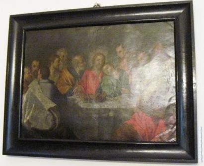 - Cadro ó óleo sobre cobre que representa a Última Cea. Marco en madeira negra. É copia libre dun gravado orixinal de Cornelis Cort do ano 1577.