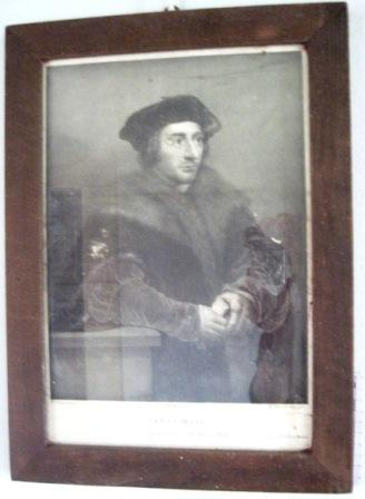 - Gravado que representa a Tomás Moro, con marco en madeira. Litografiado por Gaspar Sensi e Baldachi a partir dunha obra orixinal de Rubens do Museo do Prado, baixo a dirección de José de Madrazo, no "Real Establecimiento Litográfico de Madrid". Trátase dun dos exemplares daquel proxecto ambicioso desenvolvido por Madrazo, a chamada Colección litográfica de los cuadros del rey de España el señor don Fernando VII, que pretendía difundir as obras da colección real existentes no Museo aberto en 1819 que logo sería o Prado.