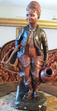 - Estatuíña de terracota policromada dun rapaz con cesto e cántaro; calza zocos e viste pantalón bombacho de cor tella, chaqueta verde e camisa branca. Vai toucado cun copete do que asoma o mechón loiro do cabelo. Apoiado nunha base cadrada. Responde ao estilo, pretendidamente fiel á unha cotiandade pintoresca, das realizadas por Joseph Le Guluche (1849-1915), nun tipo de produción seriada e industrial, destinada a un público popular, ao servizo das manufacturas de Alphonse Hanne.