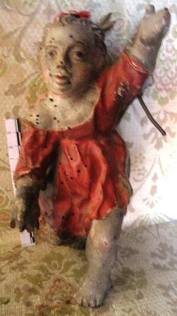 - Figura do neno Xesús con vestido vermello en madeira policromada.