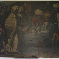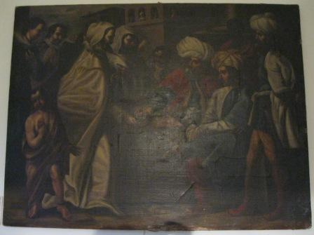 - Óleo sobre lenzo que representa a redención de cativos cristiáns pola Orde Mercedaria, no momento no que San Pedro Nolasco paga o rescate. É posíbel que na marxe esquerda a parella representada sexa a dos doantes. O tipo de iluminación é tenebrista, quizais poidamos buscarlle una influencia italiana pero a partir de pintores españois viaxados a Nápoles, como Jusepe Martínez, quen por certo dedicou unha serie gravada á vida de San Pedro Nolasco.