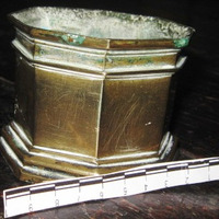 - Salvadeira en bronce dourado de corpo octogonal, coa súa boca lixeiramente exvasada e base moldurada.