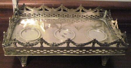 - Bandexa de escribanía en prata de forma rectangular e apoiada en catro pequenos pés de forma troncopiramidal co seu frente decorado cun ramallete de flores repuxado. Antepeito corrido perimetral, calado en losange, a modo de celosía, ritmado no remate por pináculos de bola (cinco nos lados maiores e tres nos menores) unidos por grilandas. Na base, os tres ocos para disposición do tinteiro, da salvadeira e do portaplumas. Marcada co inconfundíbel león rampante cordobés. Do prateiro cordobés Castejón (CAST), marcada polo contraste TORRE baixo a cifra 36, relativa ao ano e para mellor certeza cronolóxica.