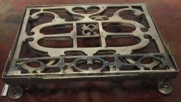 - Atril en alpaca calada con portalibros abatible, sobre catro pequenos pés.