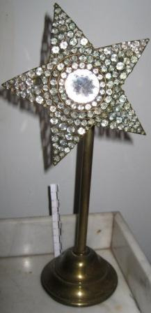 Lámpada de sobremesa en cristal tallado, con decoración xeométrica, en forma de estrela. De cor granate e dividido en dous corpos encaixables. O superior, unha mampara en forma de landra. O inferior ou astil, en forma de pedestal tronconónico con moldura de bocel no colo, moito máis estreito. O pé circular e exvasado.