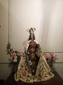 Imaxe de bastidor policromada da Virxe do Carmo co Neno. Feita en madeira con brazos articulados, con vestido e manto en raso de seda natural bordado á man. Pendentes en prata e pedrería de estrás. Vai toucada con coroa imperial de follalata e conserva os escapularios orixinais. Figura en fotos da capela, do arquivo do Pazo, como imaxe que preside o retablo, anterior ao San Francisco aloumiñando ao lobo tallado por Rodríguez Osorio.