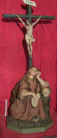 Insignia en metal dourado. O anverso consiste nun escudo coroado coa imperial. A bordura do escudo remata no xefe en dúas volutas das que nace a coroa; o campo, nun óvalo orlado con palmas flameantes, vai relevado un calvario (cruz sobre montículo). Tres bezantes cruzados por aspas incisas (emblemas das chagas de Cristo?) dispóñense a ambos lados e xusto debaixo da imaxe. A falta de máis datos e referencias, presupoñemos sexa un recordo de Terra Santa. O reverso, plano, conserva o prendedor para o levar nun ollal.