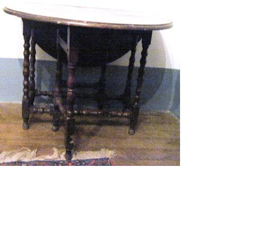 Mesa estensible de dúas ás abisagradas, en madeira de castiñeiro; con seis patas lisas con chambrana torneada, dúas delas abatibles. O corpo conta con dous caixóns laterais.